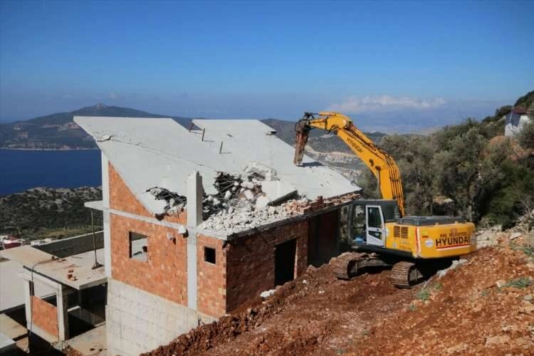 ANTALYA (AA) - Antalya'nın Kaş ilçesinde belediye ekipleri, tarihi Likya Yolu güzergahındaki 2 kaçak villanın yıkımını gerçekleştiriyor.