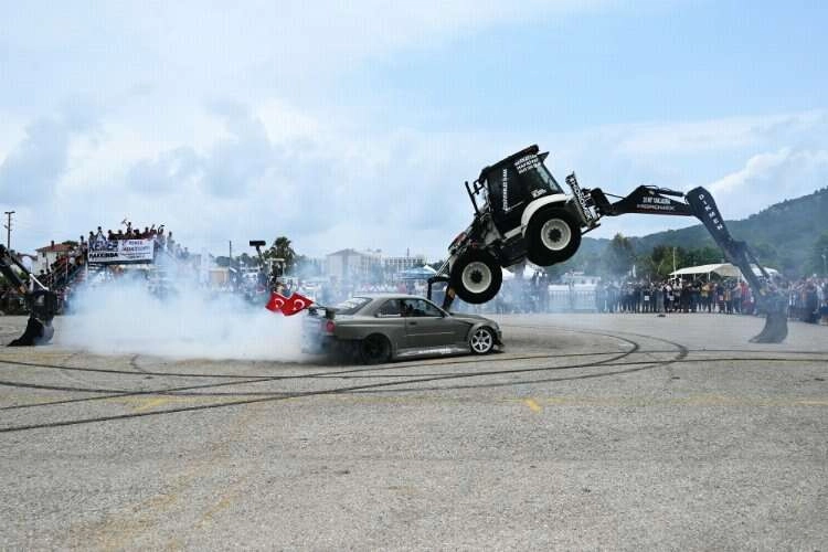 Festivalde iş makinelerinin altından geçerek yapılan drift şovları ise heyecanlı anlar yaşattı.