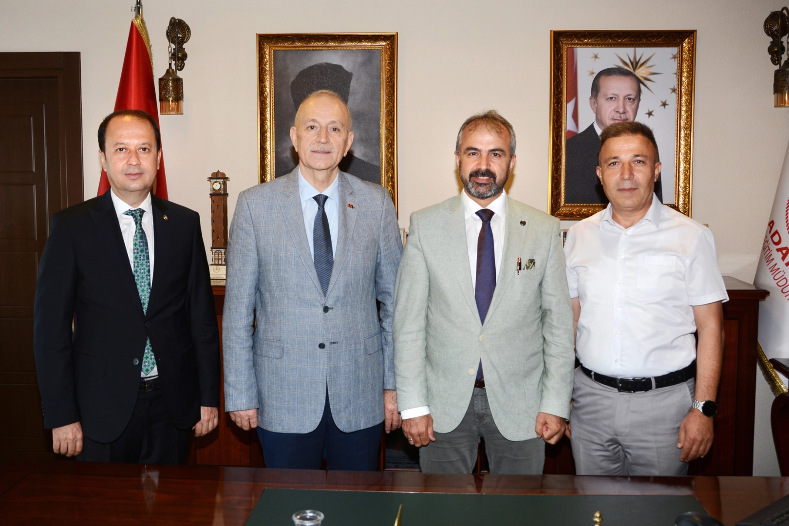 Adana Ticaret Borsası Başkanı Şahin Bilgiç, Yönetim Kurulu Üyeleri Hamit Tezcan, Şahin Güneşer ve Genel Sekreter T. Gökhan Öztürk ile birlikte Adana İl Tarım ve Orman Müdürlüğü’ne atanan Atilla Bayazıt ve Adana İl Milli Eğitim Müdürü Yusuf Tüfekçi’ye “hayırlı olsun” ziyaretinde bulundu. Bilgiç, ziyaret sırasında kurumlar arası işbirliğinin önemine dikkat çekerek, “Eğitim ve üretim el ele verdiğinde gerçek kalkınma mümkün” dedi.