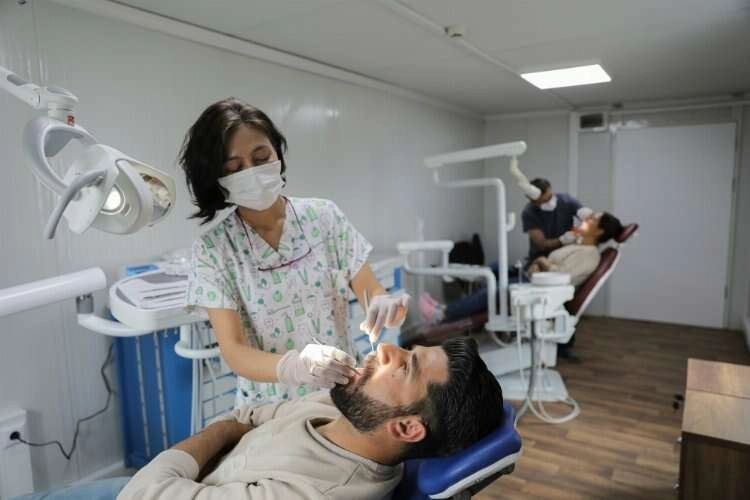 Hatay'ın Defne ilçesinde Kocaeli Büyükşehir Belediyesince hazırlanan ve Sağlık Bakanlığına devredilen sahra hastanesinde mesaiye başlayan çift, yaklaşık 10 gündür depremzedelere ağız ve diş sağlığı konusunda yardımcı oluyor.
