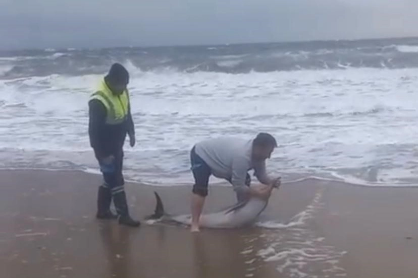 Belediye personeli Doğukan Akıncı, yunus balığına ulaşarak onu kucaklayıp yeniden denize göndermeyi başardı. Yaşanan olay vatandaşların yüreğini ısıttı.