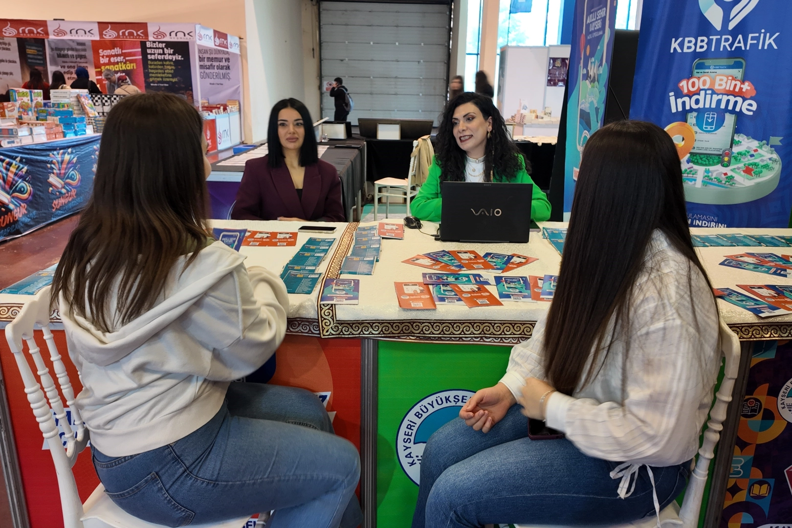 8’inci Kayseri Kitap Fuarı’nda çocukların kitap heyecanı yüzlere yansırken, Kayseri Büyükşehir Belediyesi bünyesindeki Alo 153 İletişim Merkezi ve Beyaz Masa ekipleri de vatandaşlarla birebir iletişim kuruyor.
