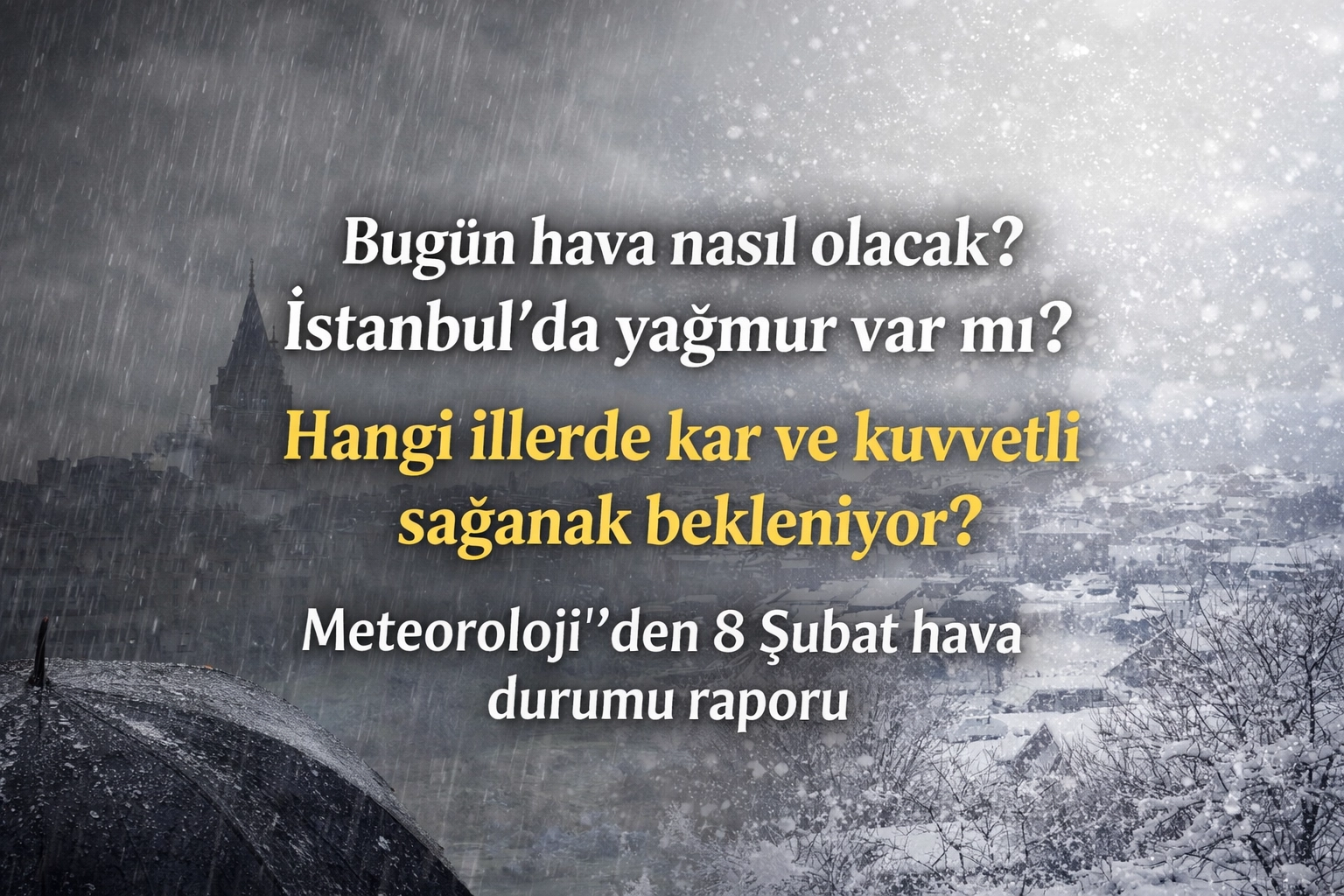 Meteoroloji Genel Müdürlüğü, 8 Şubat 2026 Pazar gününe ilişkin son hava durumu tahminlerini yayımladı. Güncel rapora göre Türkiye genelinde parçalı ve çok bulutlu bir hava beklenirken, birçok bölgede sağanak yağış, yüksek ve iç kesimlerde ise karla karışık yağmur ve kar etkili olacak. Özellikle İstanbul dahil bazı iller için kuvvetli yağış uyarısı yapıldı.Hava sıcaklıklarının ülke genelinde mevsim normallerinin üzerinde seyretmesi beklenirken, güneydoğu kesimlerde sıcaklıklarda az da olsa artış öngörülüyor.