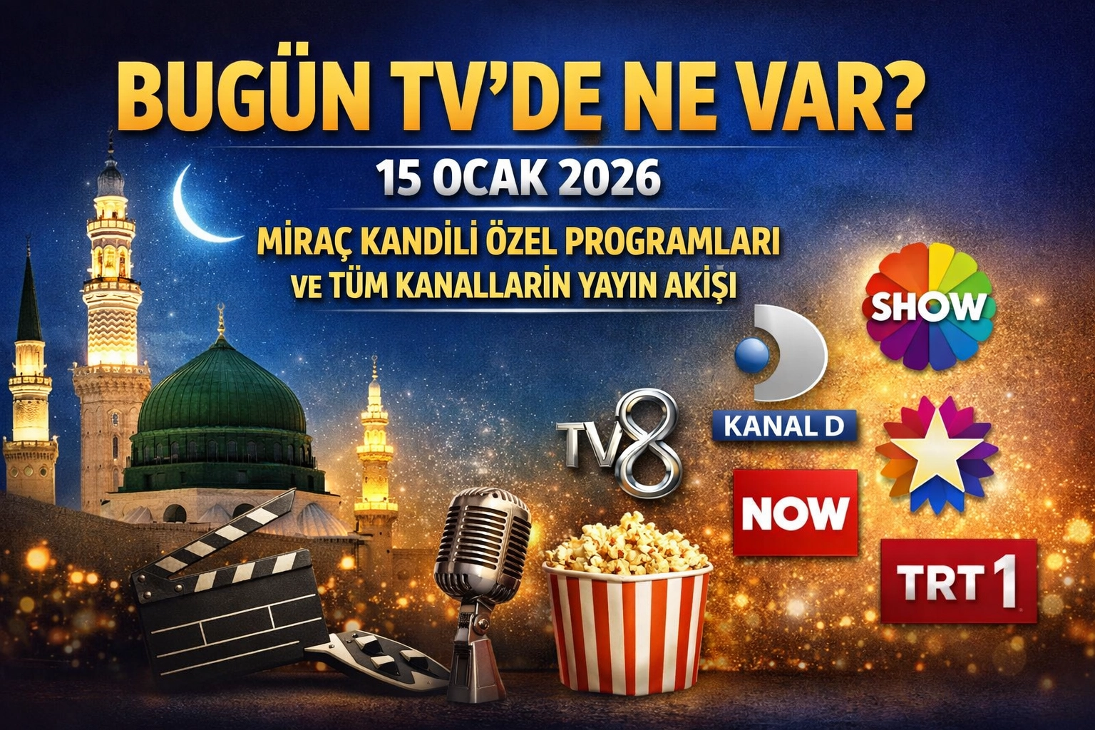 TV yayın akışı 15 Ocak 2026 listesi izleyicilerle paylaşıldı. Miraç Kandili dolayısıyla televizyon kanalları bu akşama özel dini programlarla ekranlara gelirken, dizi ve yarışma severler için de dikkat çeken yapımlar yayınlanacak. “Bugün TV’de ne var?” sorusunun yanıtını arayanlar için Kanal D, Show TV, ATV, Star TV, TV8, NOW TV ve TRT 1 yayın akışı detayları netleşti.