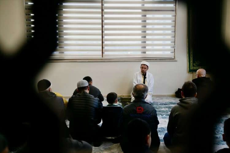 Kahramanmaraş merkezli 6 Şubat'taki depremlerden etkilenen Hatay'dan gelerek Gençlik ve Spor Bakanlığına bağlı Doğan Aslan Bey Öğrenci Yurdu'nda misafir edilen depremzedeler, bayram namazını hazırlanan mescitte kıldı. Cemaat, hutbe okunması ve dua edilmesinin ardından birbirleriyle bayramlaştı.