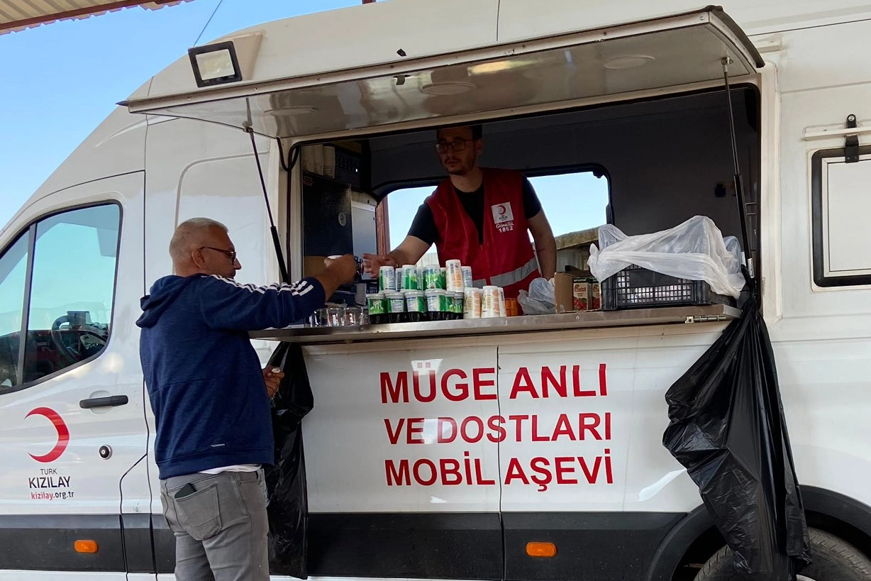 Bursa'daki yangına müdahale eden ekipler, yangından etkilenen vatandaşlara destek olmak amacıyla Kızılay'a ait mobil ikram araçlarından gıda ve içecek dağıtımı yapıldı. Vatandaşlar, yangın bölgesinde görev yapan ekipler tarafından sağlanan bu yardımlardan faydalandı.