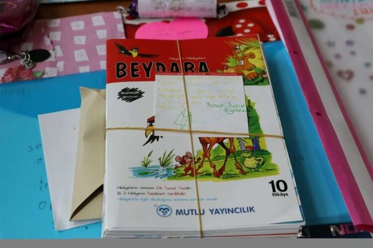 Notlar hediyelerle birlikte çadır kentte kalan çocuklara ulaştırılıyor.