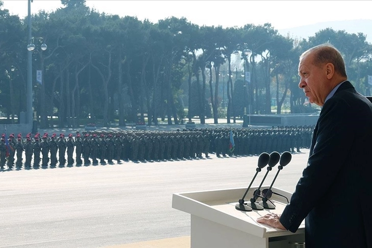 Cumhurbaşkanı Recep Tayyip Erdoğan, "(Azerbaycan) Bu zaferi bir son olarak değil, Kafkasya'da kalıcı barışa giden yolun kilometre taşı olarak görüyoruz." dedi.Cumhurbaşkanı Recep Tayyip Erdoğan, Azerbaycan'ın Zafer Günü Töreni'nde konuştu.
