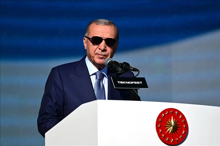 "Ülkemizin iftihar vesilesi olan savunma sanayimiz kelimenin tam anlamıyla her alanda destan yazıyor"Cumhurbaşkanı Erdoğan konuşmasında, Mehmet Akif Ersoy'un İstiklal Marşı'ndaki "Sen şehit oğlusun incitme yazıktır atanı. Verme dünyaları alsan da bu cennet vatanı." dizelerini hatırlattı.