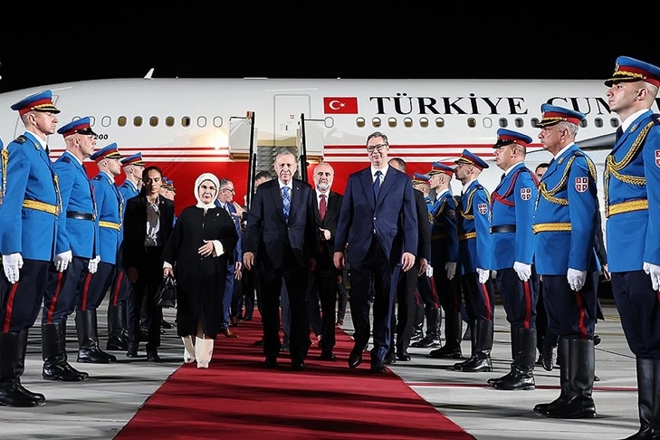 Belgrad Nikola Tesla Havalimanı'nda Sırbistan Cumhurbaşkanı Aleksandar Vucic, Türkiye'nin Belgrad Büyükelçisi Hami Aksoy ve Novi Pazar Başkonsolosu Osman Peşmen tarafından karşılanan Erdoğan, heyetle bir süre sohbet etti.