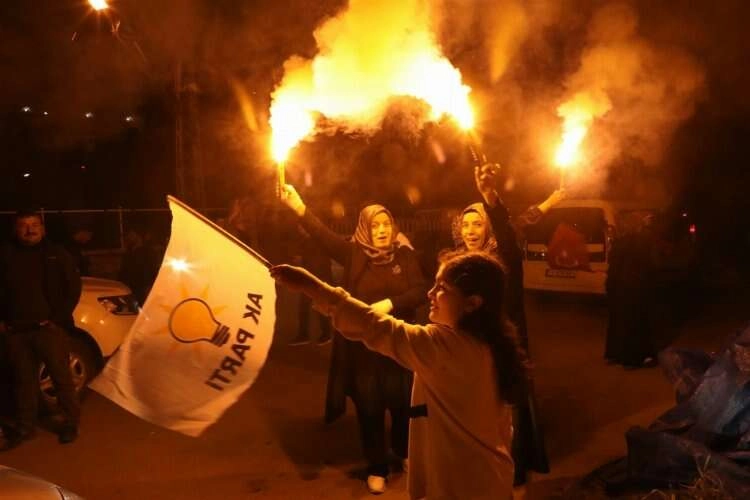AK Parti İl Başkanlığı önünde toplanan vatandaşlar, Erdoğan'ın seçim başarısını kutladı.