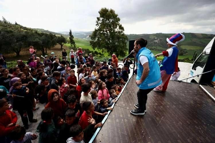 HATAY (AA) - ÖMER ÜRER / EMRE AYVAZ - Kahramanmaraş merkezli 6 Şubat'taki depremlerin ardından bölgede arama kurtarma faaliyetlerine fönüllü olarak katılan tiyatro oyuncusu ve sunucu Murat Demir, İstanbul Bahçelievler Belediyesinin "Hayal Tamirhanesi Mobil Oyun Aracı" ile Hatay'ın kırsal mahallelerini dolaşıyor.