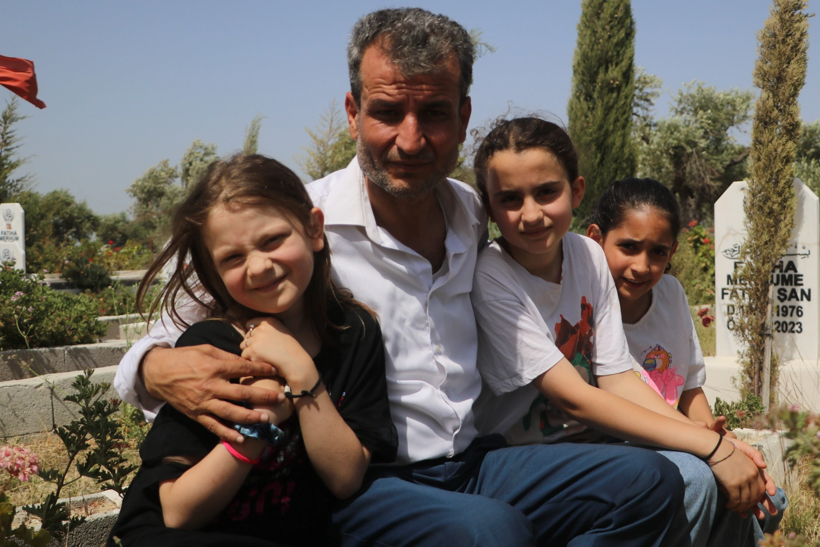 Hatay’da asrın felaketinde 3 evladını ve eşini kaybeden gazeteci Mahmut Şan, çöken binanın enkazından kurtardığı 4 evladıyla hayata tutundu. Kahramanmaraş merkezli depremlerde Hatay’da 25 bine yakın insan vefat etmişti. Antakya ilçesi Ürgenpaşa Mahallesi’nde yaşayan Şan ailesi depreme Mehtap apartmanında yakalandı. Asrın felaketinde yerle bir olan apartmanda Gazeteci Mahmut Şan’ın evlatları; Hatice, Muhammed, Selahaddin ve eşi Fatma hayatını kaybetti. Çöken binadan yaralı olarak kurtulan baba kızları; Kadriye, Cansu, Yağmur ve otizmli Mahmut’u enkazdan kurtarmayı başardı. Evlatlarını ve eşini Altınözü ilçesi Keskincik Mahallesi’nde bulunan mezarlığa defneden baba, hayatta kalan evlatlarıyla birlikte yaşama tutundu. Çocuklarıyla zaman geçiren ve onlarla yakından ilgilenen Şan, Kurban Bayramıyla aynı güne denk gelen Babalar Günü’nde evlatlarının mezarını hayatta kalan kızlarıyla ziyaret etti. “Ben kızlarımı yara almadan çıkarmayı başardım ama ben sırtımdan yara almıştım”