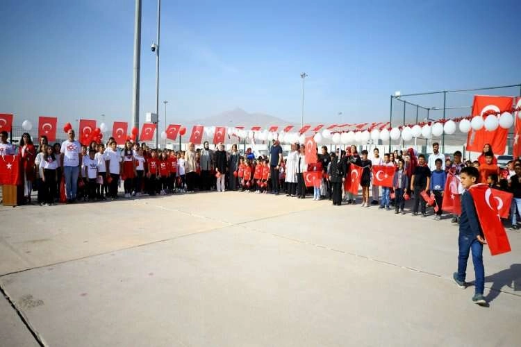 Ellerinde Türk bayraklarıyla törenin yapılacağı alana gelen vatandaşlar, burada öğrenciler tarafından hazırlanan gösterileri izledi.