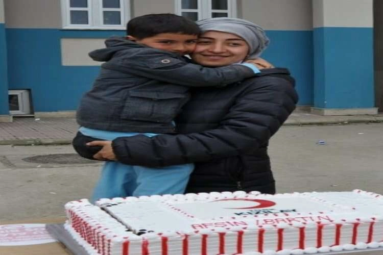 Aşık Mahsuni Şerif Ortaokulu Bahçesine kurulan konteynır kentte 7 yaşına giren Emir Fehmi Can'ın yeni yaşı, Türk Kızılayının gönüllü ekiplerince kutlandı.