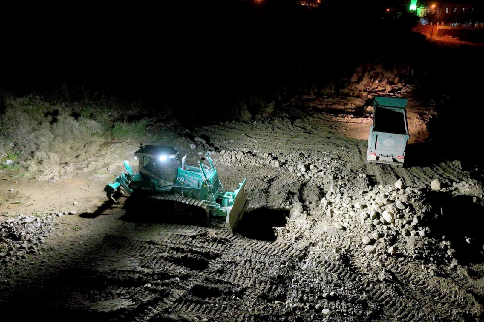 Bölge genelinde dere yatakları, taşkın kontrol tesisleri, menfezler ve drenaj hatlarında kontroller gerçekleştiren ekipler, iş makineleri, araçlar, ekipmanlar ve tecrübeli operatörlerle gece gündüz çalışmalarına devam ediyor. Taşkın riski taşıyan noktalarda suyun tahliyesi sağlanırken, vatandaşların can ve mal güvenliğini korumaya yönelik önlemler de artırıldı.
