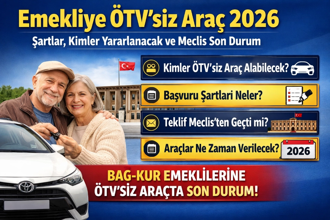 Emeklilere ÖTV'siz araç verilecek mi? 2026 yılında Bağkur’lu emekliler için gündemde olan Özel Tüketim Vergisi (ÖTV) muafiyetli araç satışı, milyonlarca emekli tarafından merak ediliyor. Peki şartlar neler, kimler yararlanabilecek ve teklif Meclis’ten geçti mi? İşte detaylar… E