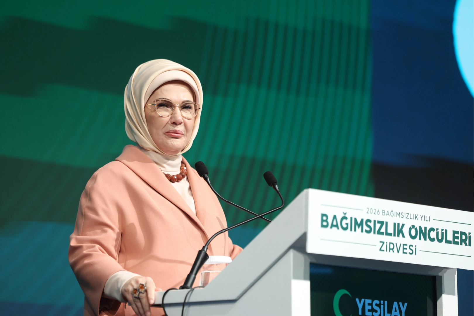 Emine Erdoğan, Türkiye Yeşilay Cemiyeti tarafından Şişli’de düzenlenen Bağımsızlık Öncüleri Zirvesi’nde yaptığı konuşmada, Yeşilay’ın 105 yıldır bağımlılıkla mücadele ettiğini ve hayat kurtardığını vurguladı. Erdoğan, Yeşilay’ın 120 şubesi, 105 danışmanlık merkezi ve 158 bin gönüllüsüyle vatandaşların yanında olduğunu belirterek, bağımlılıkla mücadele eden kişilere yeniden ayağa kalkma ve hayatlarında temiz bir sayfa açma gücü verdiğini söyledi.