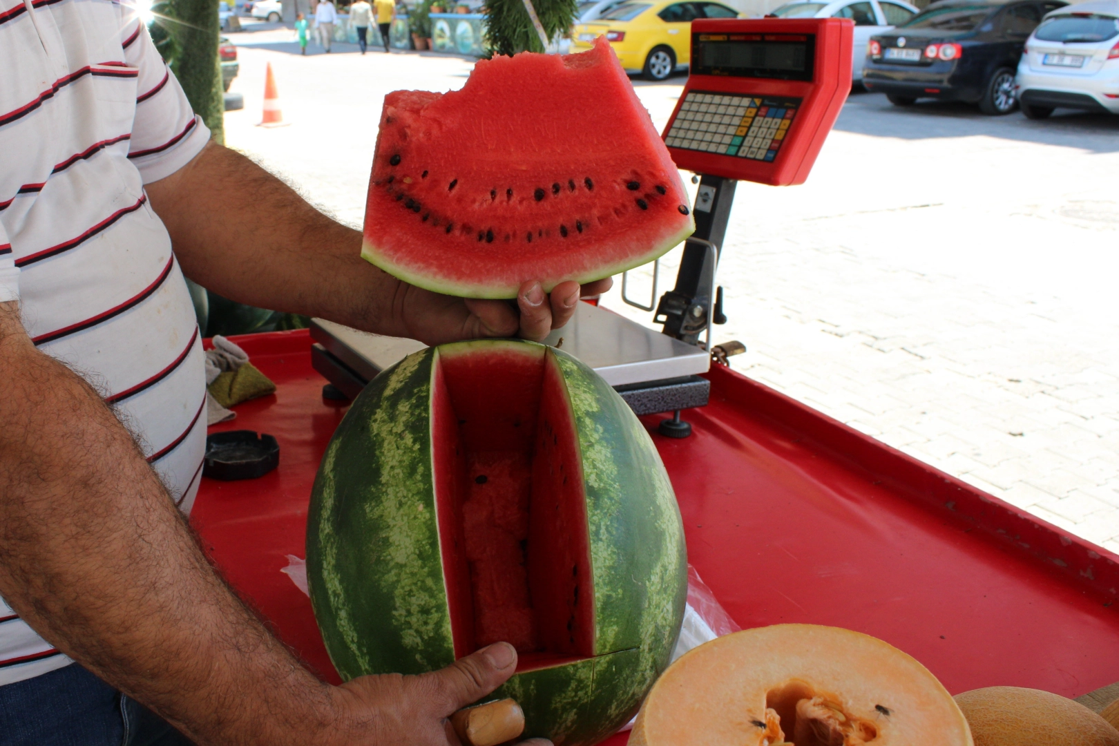 Erzincan’da hava sıcaklıklarının artmasıyla birlikte vatandaşlar su ihtiyacını gideren meyvelerden karpuza yöneldi. Sıcaklığın 30 derecenin üzerinde seyrettiği Erzincan’da vatandaşlar, sulu ve serinletici meyvelerden olan karpuza ilgi gösteriyor. Geçen yıla göre bu yıl daha az ekildiği için karpuz fiyatlarında artış yaşanıyor. Ancak vatandaşlar karpuzdan vazgeçemiyor.