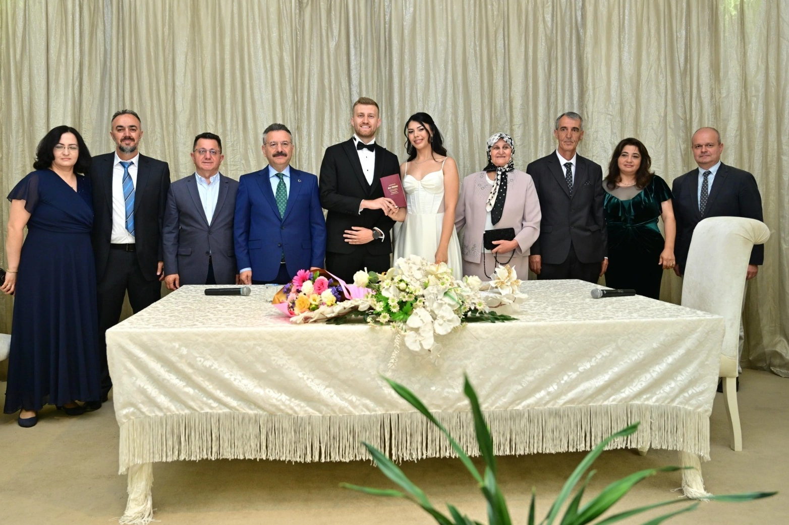 Eskişehir Valisi Hüseyin Aksoy, kentte görevli bir polis memurunun kızının nikah törenine katılarak çiftin mutluluğuna ortak oldu. Vali Aksoy, polis memuru Nazimet Sarıoğlu’nun kızı Hatice Sarıoğlu ile Recep Tandoğdu’nun nikah merasiminde şahitlik yaparak genç çifti bu özel günlerinde yalnız bırakmadı. Genç çiftin nikah şahitliğini yapan Hüseyin Aksoy, çifte ömür boyu mutlu ve huzurlu bir hayat diledi.