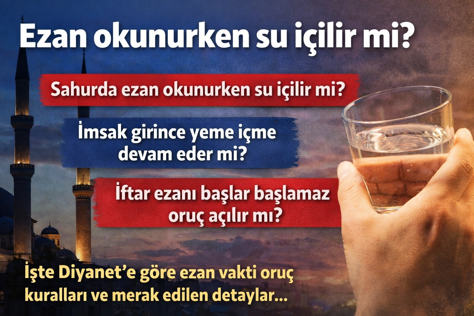 Ezan okunurken su içilir mi, sahurda ezan bitene kadar içmek orucu bozar mı? İmsak vakti tam olarak ne zaman başlar, iftar ezanı okunur okunmaz su içilebilir mi? Ramazan öncesi en çok merak edilen bu soruların yanıtı Diyanet’in açıklamalarıyla netleşti.