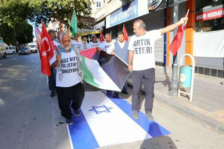 Kayseri-Niğde-Adana-İskenderun güzergahından Cilvegözü Sınır Kapısı’nı geçip, önce Filistin’e, daha sonra da Kudüs’e ulaşmak için yürüyen 3’ü çocuk, 4’ü kadın 27 kişi, sabah saatlerinde Adana’da tekrar yürüyüşe başladı. Ulu Cami önünde grup adına konuşan Cafer Haluk Elgin, "Şunu bilmeliyiz ki İsrail arz-ı mev’ud hayali ile Türkiye’yi de işgal edinceye kadar durmayacaktır. Bu Siyonist kavim arkasına derin Amerika, yani İsrail lobisini de alarak kukla Biden’ı esir almıştır. Savaş suçuna yüzlerce yaptırım kararına rağmen terörist İsrail’e hiçbiri uygulanmamış. Bu da saldırganlığını ve savaş hukukuna uymayan katliamlarını arttırmıştır. İsrail güçten anlar. Ona anlayacağı dilden bir cevap elbet bir gün verilecektir" dedi.