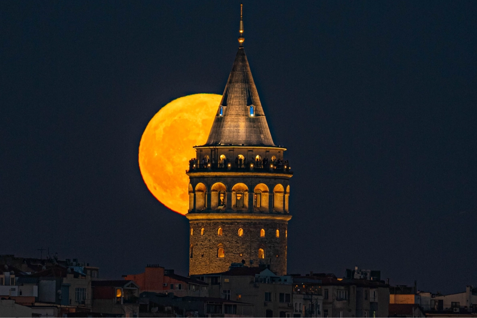 İstanbul'un sembol yerlerinden olan Galata Kulesi İle birlikte görüntülenen dolunay izleyenleri kendine hayran bıraktırdı. Havadan çekilen görüntüler ise masalsı manzaralar oluşturdu. İstanbul'da dolunayın çıkması ile fotoğrafçılar doğru konumu programlar ile hesaplayarak dolunay ile birlikte şehrin önemli yapılarını görüntülemeye çalışıyorlar. Fotoğraf sanatçısı Necat Kalkan Balat Sahili'nde Galata Kulesi ile birlikte dolunayın en net görüntüsünü yakaladı. Saatler öncesinden uygun konuma gelerek dolunayın doğuşunu zaman atlatmalı çekim tekniği ile görüntüledi. Onlarca fotoğrafın birleşmesi ile oluşan videoda ise dolunayın büyüklüğü gözler önüne serildi. Havadan çekilen görüntülerde ise Galata Kulesi ile birlikte dolunay görenleri kendine hayran bıraktı. Kulenin külahı üzerinde havadan çekilen görüntülere yansıyan o anlar sosyal medyada büyük beğeni topladı.