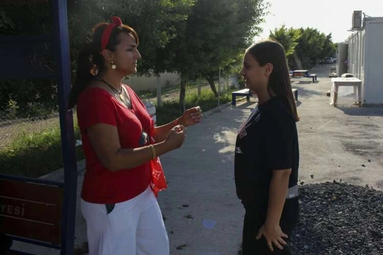 HATAY (İLKHABER) - Gölcük Depremi'ni yaşayan kuaför Çevre, yanına aldığı bakım çantasıyla İskenderun'daki konteyner kentlerde kalan kadın depremzedeleri ziyaret etti.