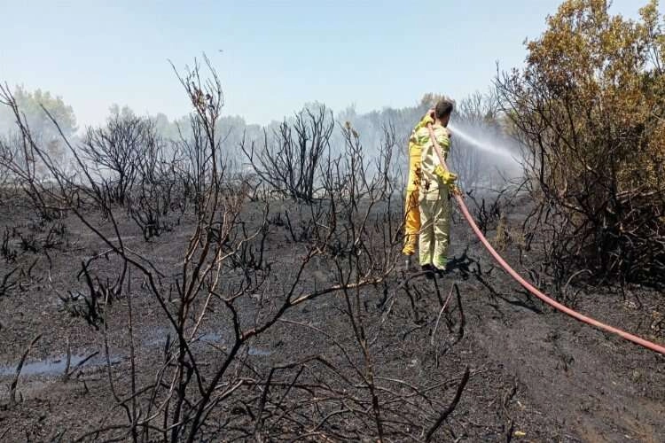 Ekiplerin yoğun müdahalesiyle kontrol altına alınan yangında yaklaşık 2 hektarlık alan zarar gördü.