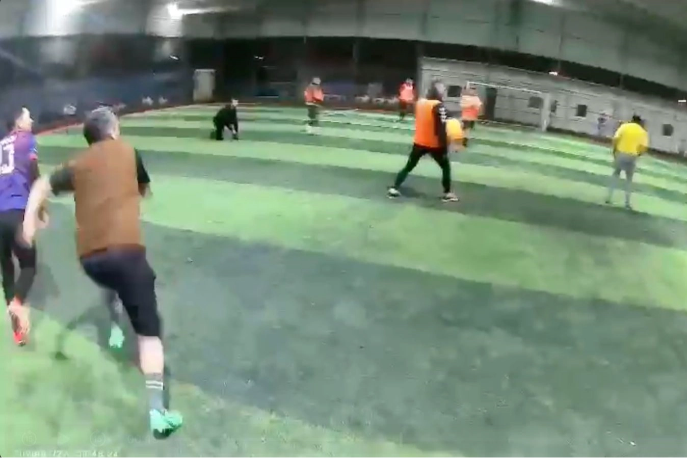 Saha hakkında konuşan futbolcular biranda gelen gürültüyle sahadan koşarak kaçarken, sahayı terk ettikleri anda çatıda çökme yaşandı. O anlar oyunculardan birinin aksiyon kamerasına saniye saniye yansıdı.