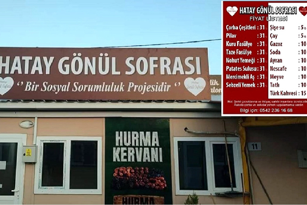Yemek fiyatlarının kentin il plakası gibi 31 TL ile sınırlı olduğu lokantada, Hatay ve ülke genelindeki hayırseverlerin dışında yurt dışında yaşayan Türk vatandaşları da şehit çocukları ve ihtiyaç sahibi depremzedelere yönelik 'askıda yemek' uygulamasına, katkıda bulunuyor.