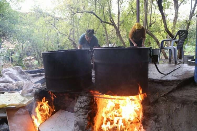 Üreticilerden Janet Çilingir, AA muhabirine, lezzeti ve kaliteyi artırdığı için yağ sıkımında geleneksel yöntemleri tercih ettiklerini söyledi.