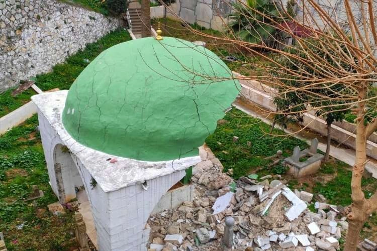 HATAY (AA) - Kahramanmaraş merkezli depremlerin yıkıma yol açtığı Hatay'da, Belen ilçesindeki Gazi Abdurrahman Paşa Türbesi'nde de hasar oluştu.