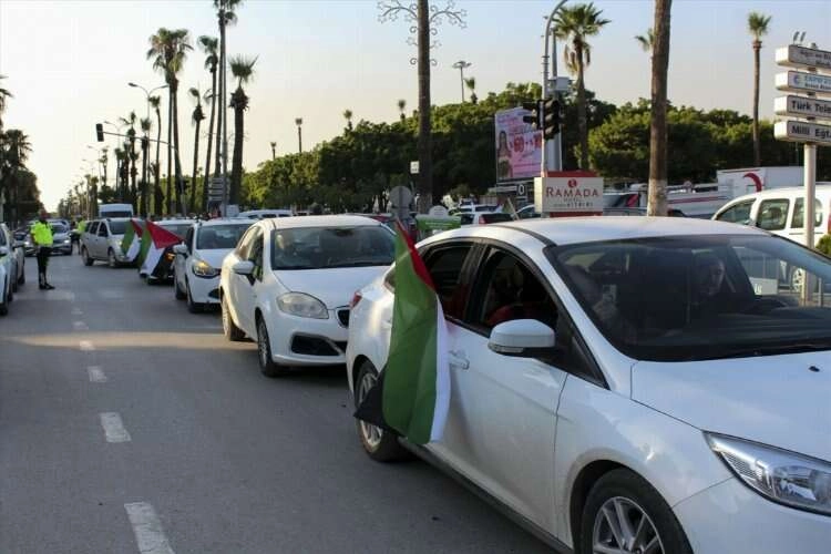 HATAY (AA) – Hatay'ın İskenderun ilçesinde, İsrail'in Filistin'deki saldırılarına tepki göstermek amacıyla konvoy düzenlendi.