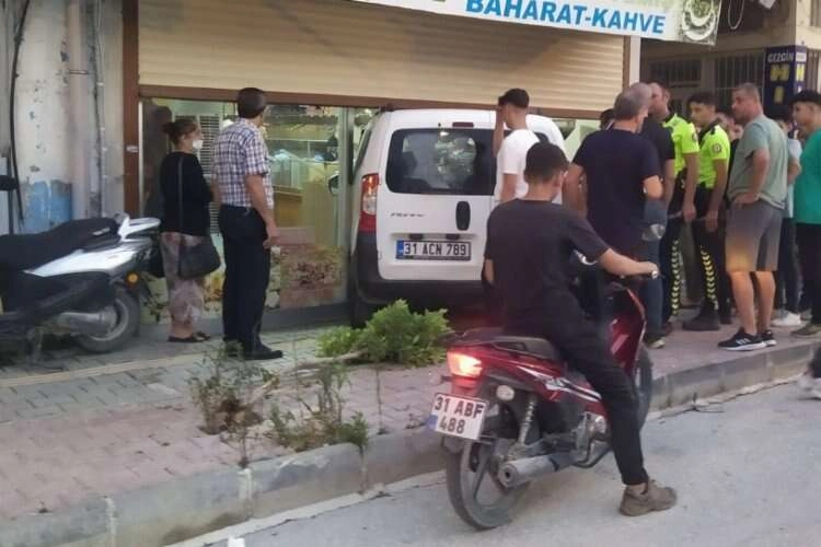 HATAY (AA) - Hatay'ın Samandağ ilçesinde kontrolden çıkan hafif ticari araç, iş yerine girdi.