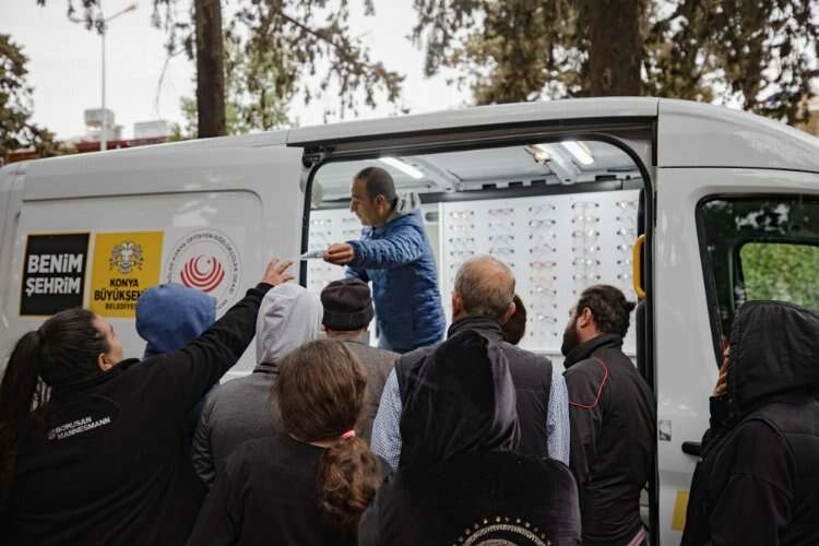 Konya Optisyenler ve Gözlükçüler Odası ve Konya Büyükşehir Belediyesinin destekleriyle gönüllü gözlükçüler, Hatay'da hizmet veren mobil gözlük istasyonu kurdu.