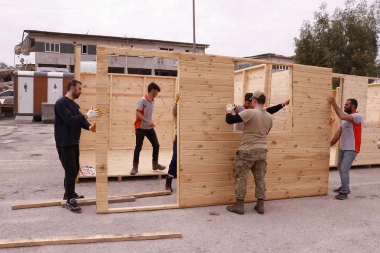 HATAY (AA) - ŞAHİN OKTAY / İBRAHİM AKTAŞ - Kocaeli'nin Gebze ilçesinde faaliyet gösteren firma tarafından bağışlanan 200 ahşap dükkanın kurulumu Hatay'da belirlenen noktalarda gerçekleştiriliyor.