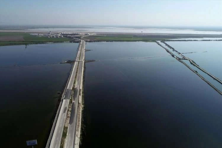 Su baskını yaşanan bölge, dronla görüntülendi.