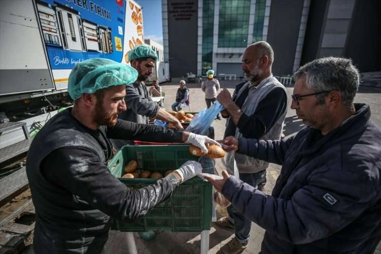 Üretim için gerekli malzemelerin Hatay Valiliğince karşılandığı, her biri 100'er gramlık "küçük ekmekler" bölgedeki depremzedeler ile farklı illerden yardım için gelenlere ücretsiz dağıtılıyor.