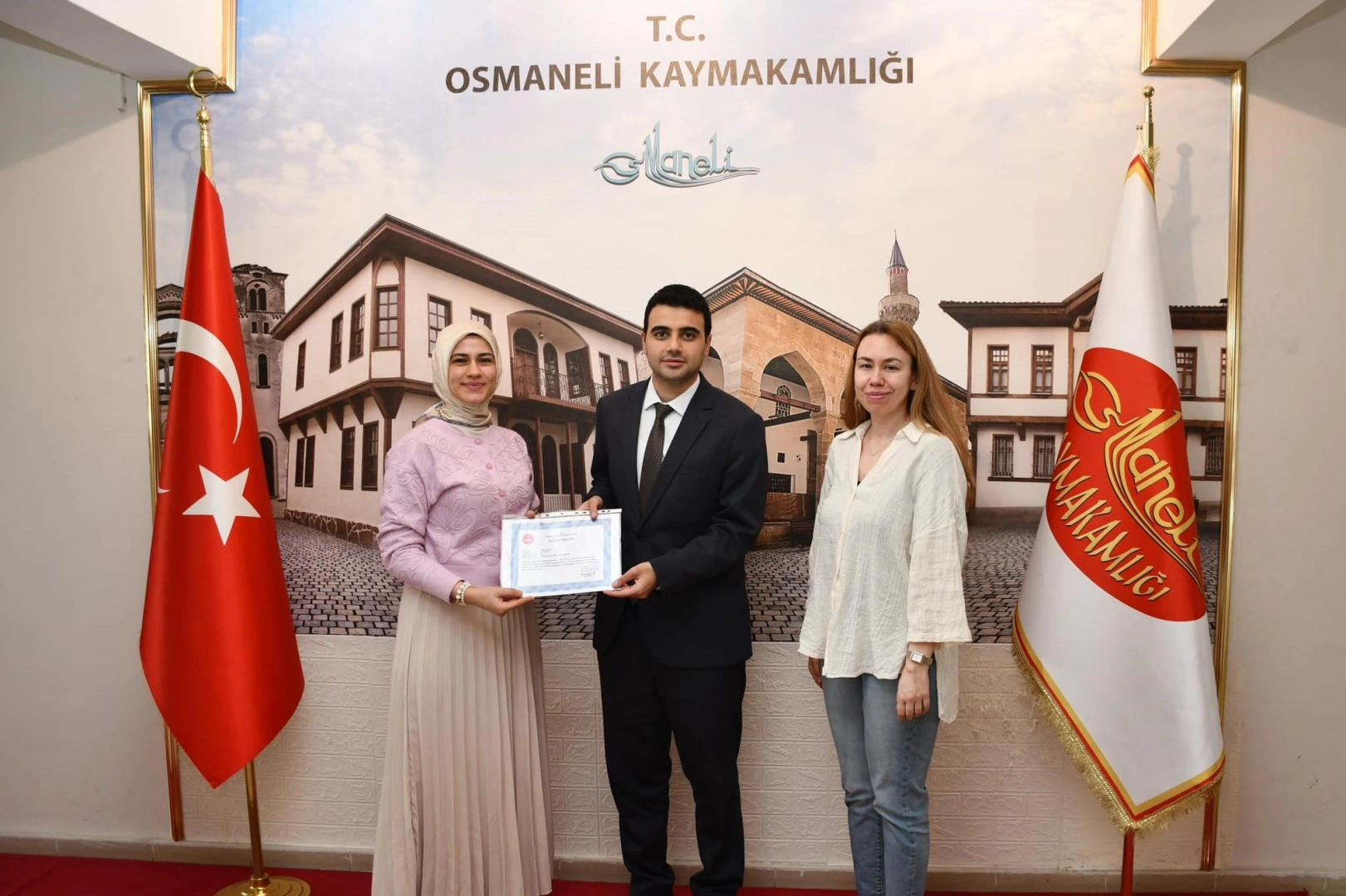 Osmaneli Kaymakamı Abdüssamed Kılıç, Osmaneli Toplum Sağlığı Merkezi (TSM) Çocuk, Ergen ve Kadın Sağlığı (ÇEKÜS) biriminde görev yapan Ebe Büşra Bilir'i, vatandaşların sağlığına yaptığı katkılar nedeniyle Başarı Belgesi ile onurlandırdı. Ebe Büşra Bilir, dikkatli takibi ve erken teşhis yeteneği sayesinde bir anne adayı ile bebeğini hayati tehlikeden kurtararak kadın doğum uzmanına zamanında yönlendirdi. Bu örnek olay, önleyici ve koruyucu sağlık hizmetlerinin toplum sağlığı açısından taşıdığı kritik önemi bir kez daha ortaya koydu.