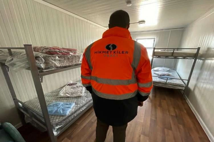 "Hazır konteyner fabrikaları bulamadık. Öyle olunca biz kendi inşaatlarımızda, şantiyelerdeki konteynerleri bir an önce söküp buraya sevk etmeye başladık. Eş zamanlı olarak aşevini kurduk. Biz depremin üçüncü günü akşamı burada sıcak yemeği çıkarmaya başladık. Bunu çok hızlı yaptık. Yaklaşık bir hafta önce de konteynerlerimizin elektrik tesisatını, ısıtma sistemini, kalorifer tesisatını, su tesisatını bitirerek alan düzenlemesini yapıp misafirleri almaya başladık. 35 aileyi misafir ediyoruz. Burası toplamda inşallah 1000 kişilik mahalle olacak. İçinde sağlık çadırı, mutfağı, aşevi, fırını, mescidiyle inşallah burayı artık sosyal alanı, çocuk oyun alanı da olacak şekilde yapıyoruz. Konutlar yapılıncaya kadar biz bu hizmeti vermek istiyoruz."