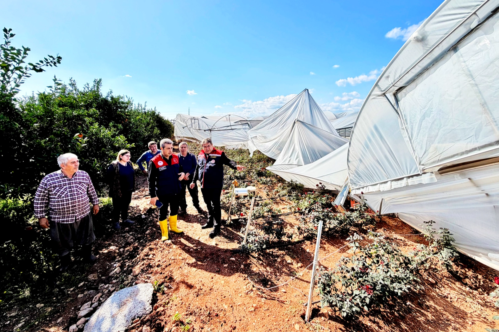 İl Müdür Erdem Karadağ, Koordinasyon Şube Müdürü Serkan Şık ve Akdeniz İlçe Müdürü Hasan Hatipoğlu ile birlikte fırtınadan etkilenen üreticileri ziyaret ederek hasar gören alanlarda incelemelerde bulundu.