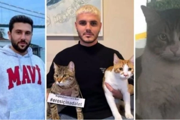 Icardi, yanına aldığı iki kediyle birlikte adalet talep etti. Kedilerden birinin boynunda "Bugün Eros'a, yarın bize" yazısı dikkat çekti.