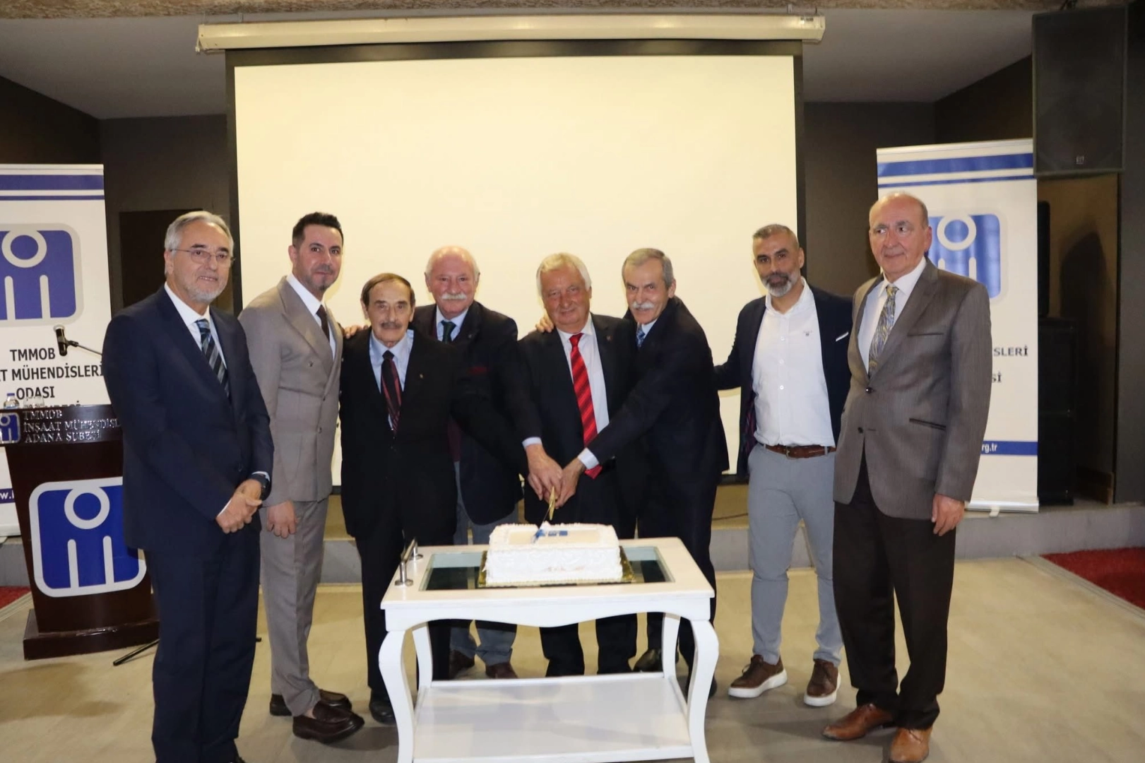 İMO Adana Şube Başkanı Hıdır Çak konuşmasına başlarken inşaat mühendislerinin toplumun her kesimine dokunan bir mesle k olduğunu belirterek şunları söyledi: "Bu gece, 70 yıllık bir çınarın gölgesinde, köklü bir tarihin ışığında bir araya geldik. 70 yıllık bir birikimi, tecrübeyi ve dayanışmayı birlikte kutlamak; aynı zamanda geçmişten bize miras kalan değerleri geleceğe taşımak için toplandık. Her biri bu köklü tarihin birer yapı taşı olan siz değerli meslektaşlarımla, burada olmaktan büyük bir mutluluk ve gurur duyuyorum. Bu gece aynı zamanda; her kuruluş yıldönümünde olduğu gibi mesleğimize, odamıza değerli katkıları olan meslek büyüklerimize; meslekte 60, 50 ve 40. Yıl onur belgelerini ve plaketlerini takdim etmenin gururunu yaşayacağız. TMMOB İnşaat Mühendisleri Odası Adana Şubesi olarak, bugüne kadar yürüttüğümüz mücadelenin, kurduğumuz dayanışma köprüsünün ve omuz omuza verdiğimiz emeğin gururunu birlikte paylaşacağız. İnşaat mühendisliği, bir ülkenin bugününü ve geleceğini şekillendiren, toplumun tüm kesimlerine dokunan bir meslektir. Bizler, her yeni projenin, her bir yapının arkasındaki gizli kahramanlarız. Köprüler, yollar, binalar; sadece birer beton ve çelik yığını değil, aynı zamanda bizim emeğimizin, alın terimizin, bilgimizin, deneyimimizin simgeleridir. Her bir yapının altında, bir mühendis olarak bizim sorumluluğumuz, özenimiz ve meslek sevgimiz yatmaktadır. Bu büyük mirası korumak ve geliştirmek için üzerimize düşen görevler var. Mesleğimizin hak ettiği saygınlığı ve güvenilirliği korumak adına tüm olanaklarımızı seferber etmekte kararlıyız."