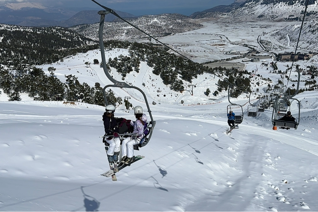Isparta'daki Davraz Kayak Merkezi'nde geç yağan karla birlikte sezon başladı.
