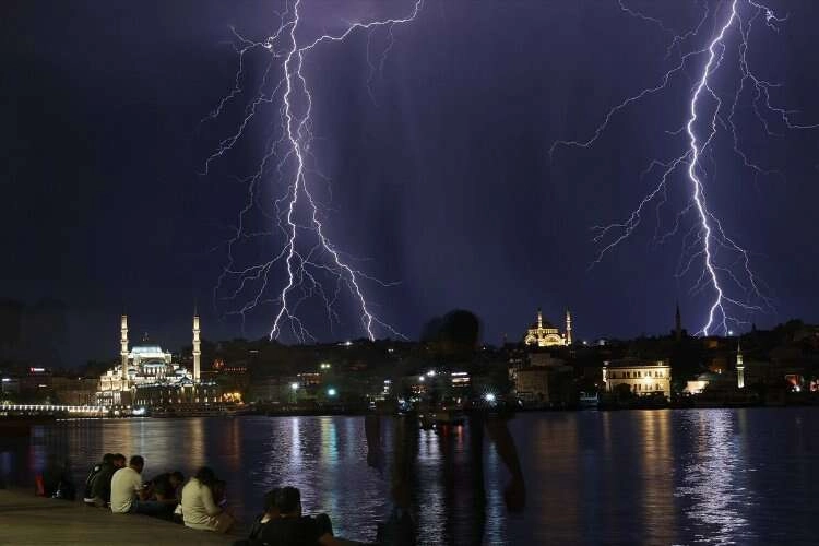 İSTANBUL (AA) - İstanbul'da beklenen yağış öncesi gökyüzünü aydınlatan şimşekler, Kız Kulesi ile birlikte görüntülendi.