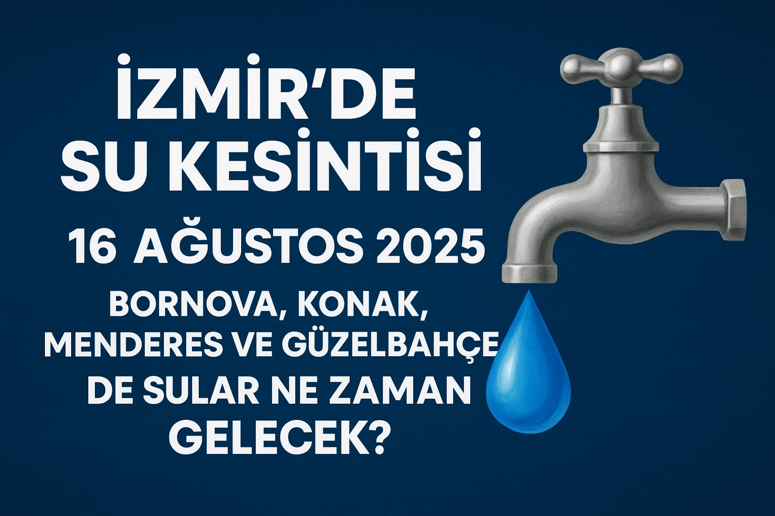 İzmir’de su kesintisi mi olacak? 16 Ağustos Cumartesi günü Bornova, Konak, Menderes ve Güzelbahçe’de sular ne zaman gelecek? Hangi mahalleler susuz kalacak ve kesintiler günlük hayatı nasıl etkileyecek? İZSU’nun planlı çalışmalarıyla vatandaşları hangi saatler arasında su beklemeli? Tüm detaylar haberimizde…