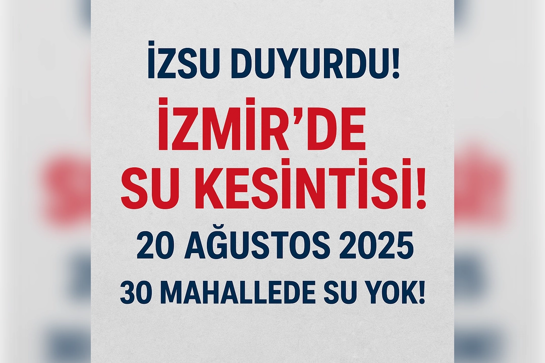İzmir’de 20 Ağustos 2025 Çarşamba günü hangi mahallelerde su kesintisi yaşanacak? Su kesintisi hangi saatlerde olacak ve neden uygulanıyor? İZSU tarafından yapılan açıklamaya göre, Bayındır, Bayraklı, Kınık, Menderes, Ödemiş, Seferihisar ve Torbalı ilçelerinde planlı ve plansız su kesintileri uygulanacak. Vatandaşlar kesinti süresi ve etkilenilen bölgeler hakkında uyarıldı.İzmir genelinde 20 Ağustos 2025 Çarşamba günü İZSU tarafından planlı ve plansız su kesintileri uygulanacak. Peki hangi ilçelerde ve hangi mahallelerde su kesintisi yaşanacak? İzmir su kesintisi...