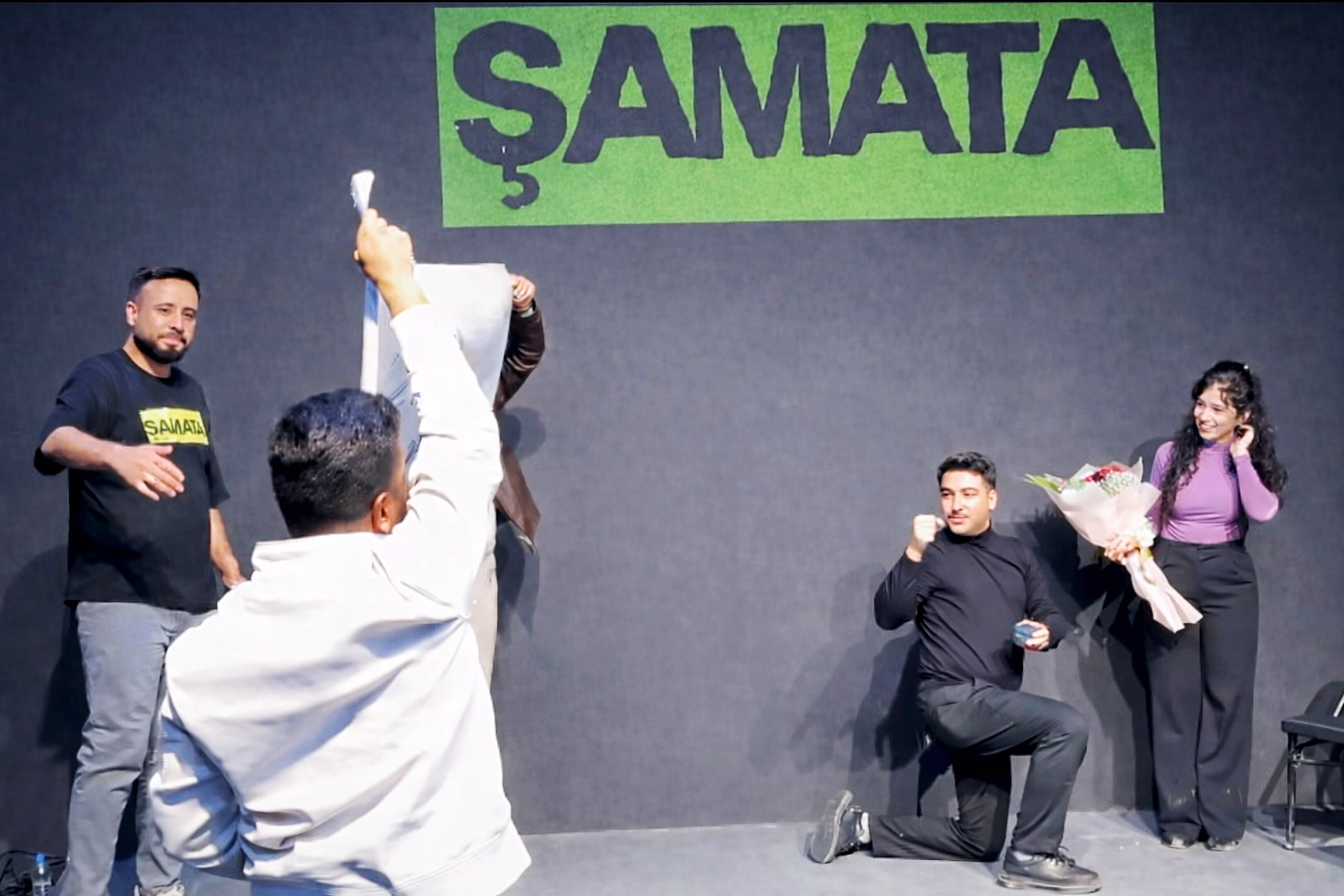 Usta oyuncular Mesut Kurt, Mustafa Ergüleç ve Şükrü Can Kurt’un sahnelediği, seyircinin de aktif olarak oyuna dahil olduğu interaktif komedi “Tiyatro Şamata”, izleyenlere kahkaha dolu bir gece yaşattı. Doğaçlama anların ve sürpriz gelişmelerin eksik olmadığı oyun, sahnede renkli ve unutulmaz görüntülere ev sahipliği yaptı.