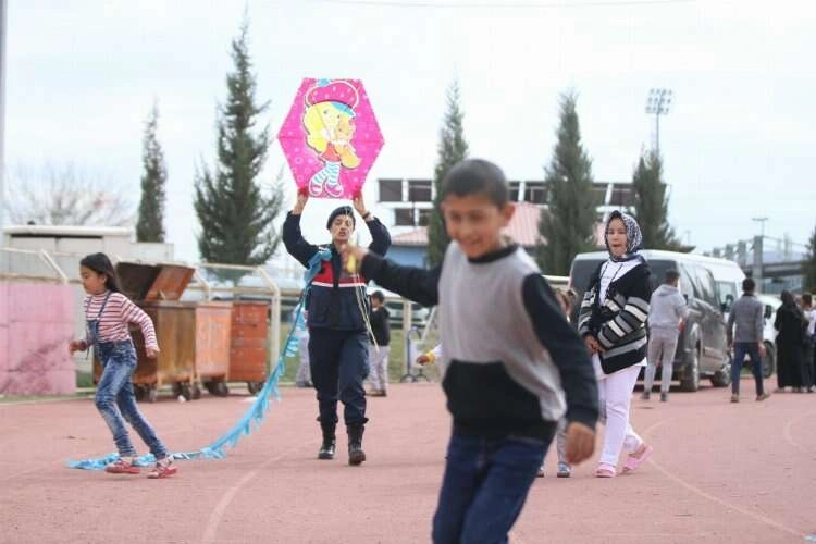 İzmir Bornova Jandarma Komando Tugay Komutanlığında görev yapan jandarma komandolar depremzede çocuklara uçurtma uçurmayı öğretti.